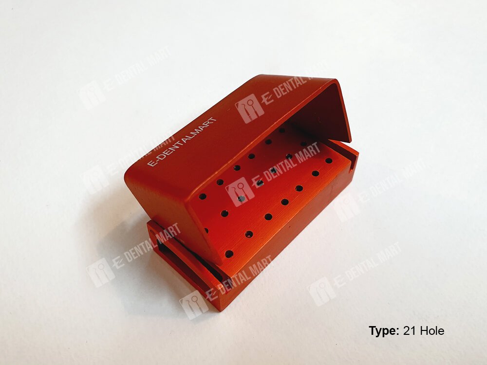 The dental bur holding rack has a simple lid that opens fully so that you have a view of the burs that it contains. Use the metallic bur rack to store burs, organize them for easy identification when needed, and hold them for sterilization.