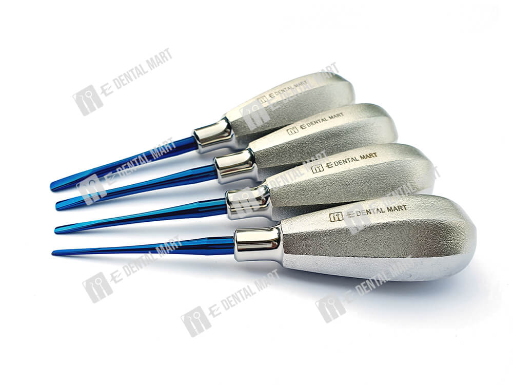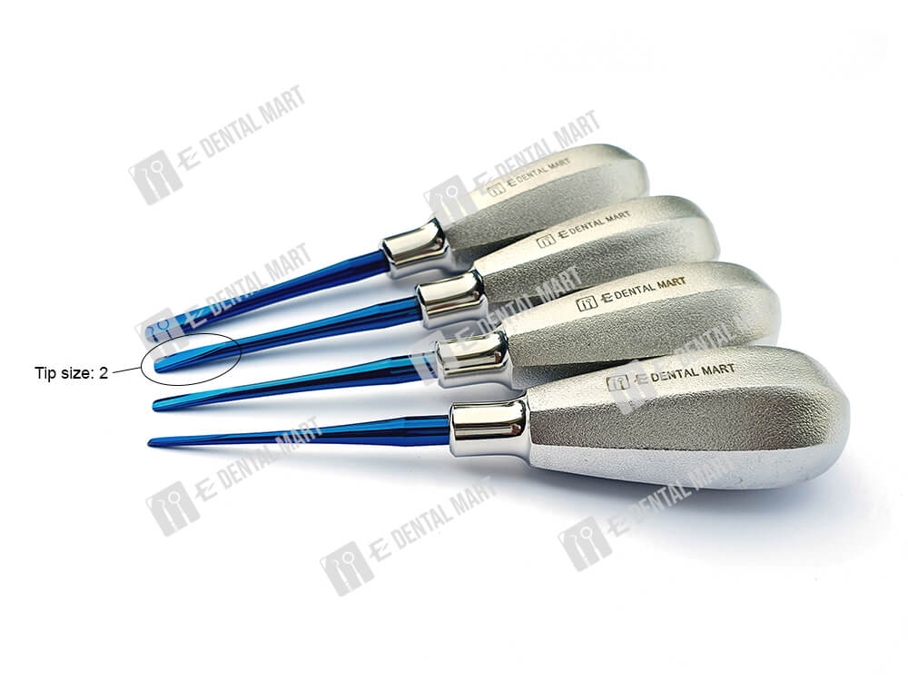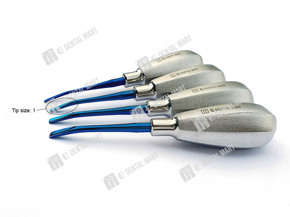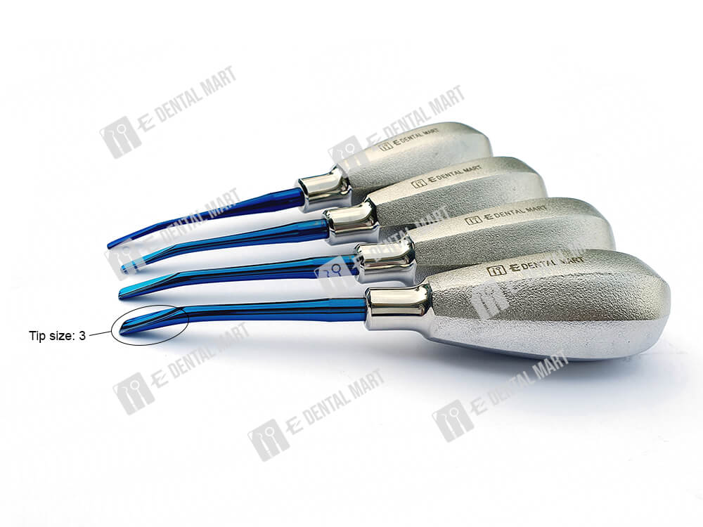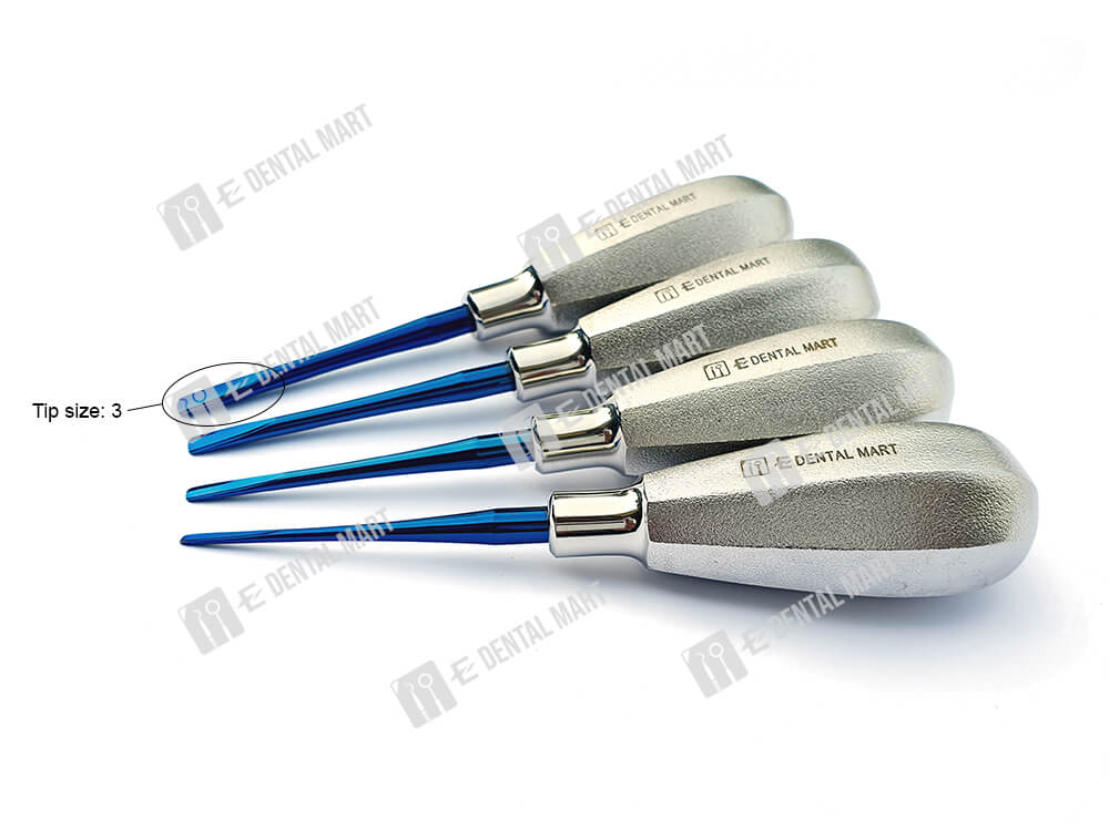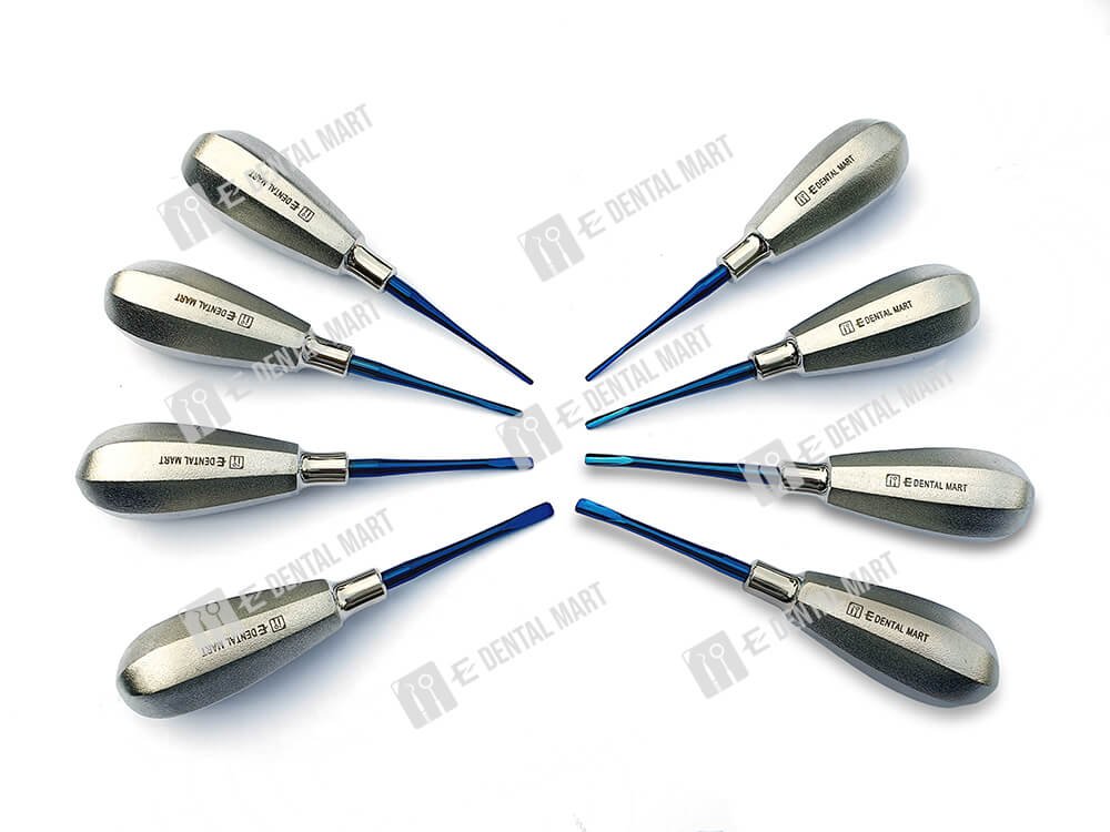 Package includes: 4pcs of straight elevator (0.5, 1, 2 and 3 size), 4pcs of bend elevator (0.5, 1, 2 and 3).