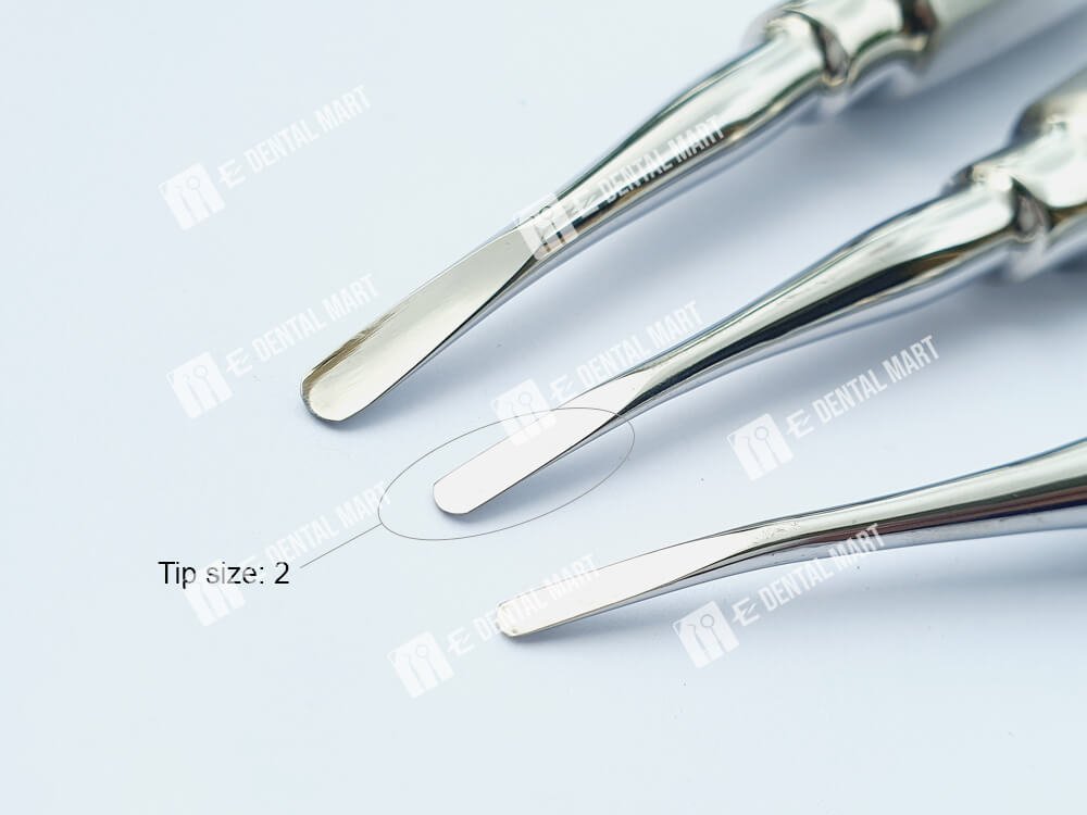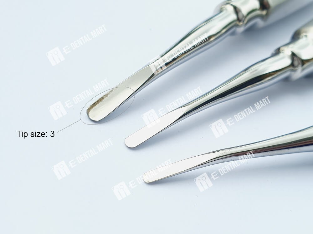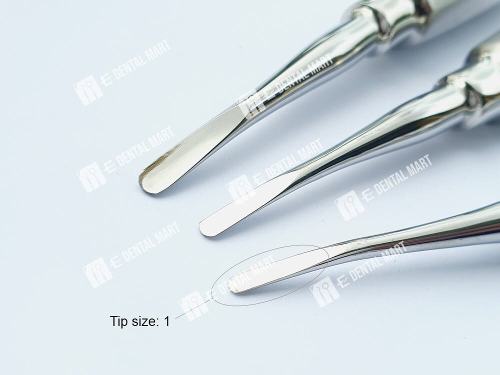 At E-Dental Mart, you can choose between three straight elevator types. The primary differences are with the sizes of the working tips. This gives you more options as there are different anatomy of teeth.